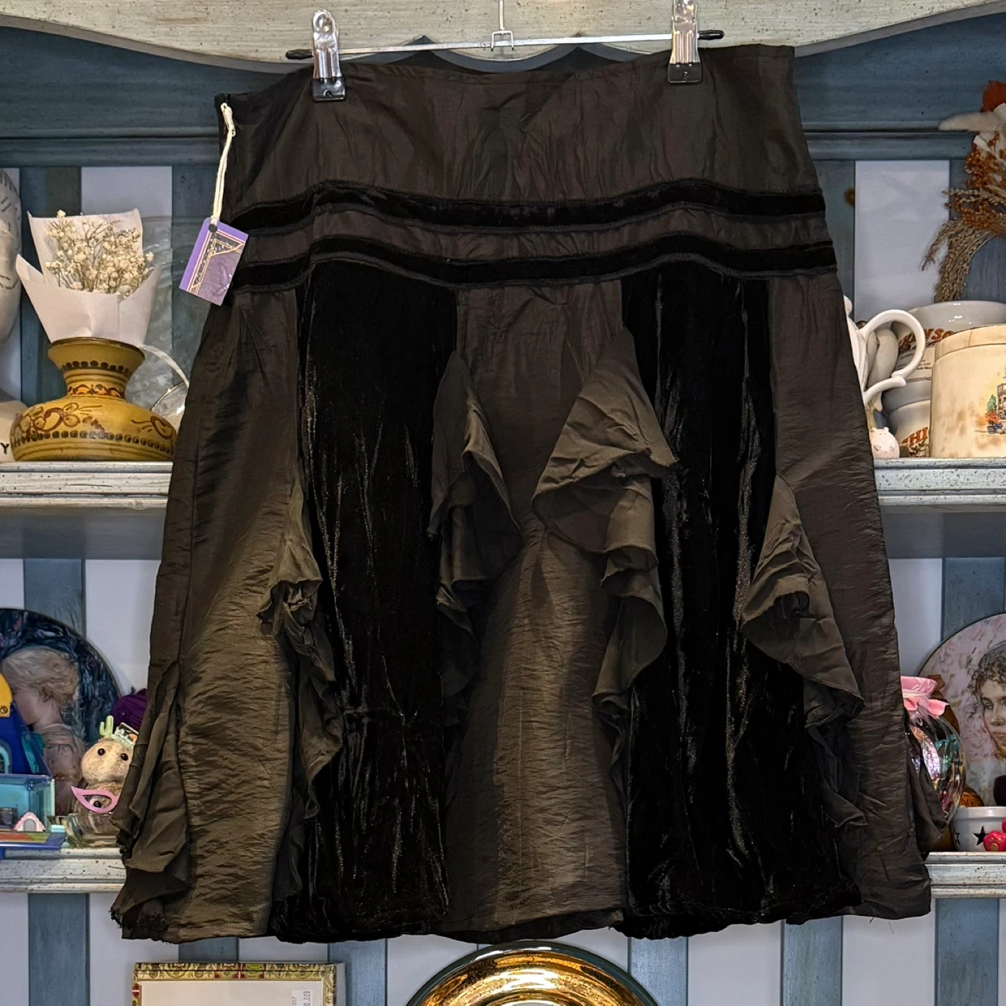 Buy & SellNess Black SkirtNess Black Skirt$46Ness black mixed-material skirt with velvet and ruffle details. Size Large Waist: 16.5" Length: 23.5"ConditionGoodSizeLargeBrandNess1 chats·0 favorites·12 viewsSELLERverifiedTatyanaAnnex761 reviewWHERE TO MEETStore