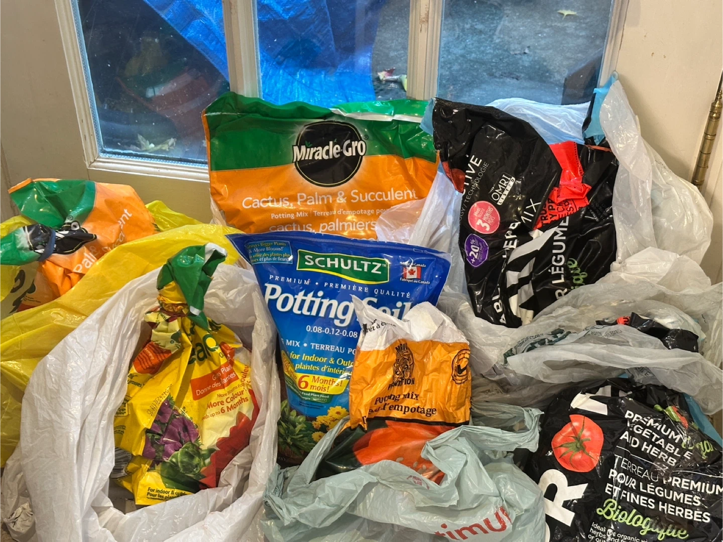 Decluttering and getting rid of mt unused potting soils, unused in the bag. One is new and unopened, other 6 are partially used. Includes a few varieties including cactus and succulent mix, vegetables and herbs mix, and regular potting mix. Take everything for $10.