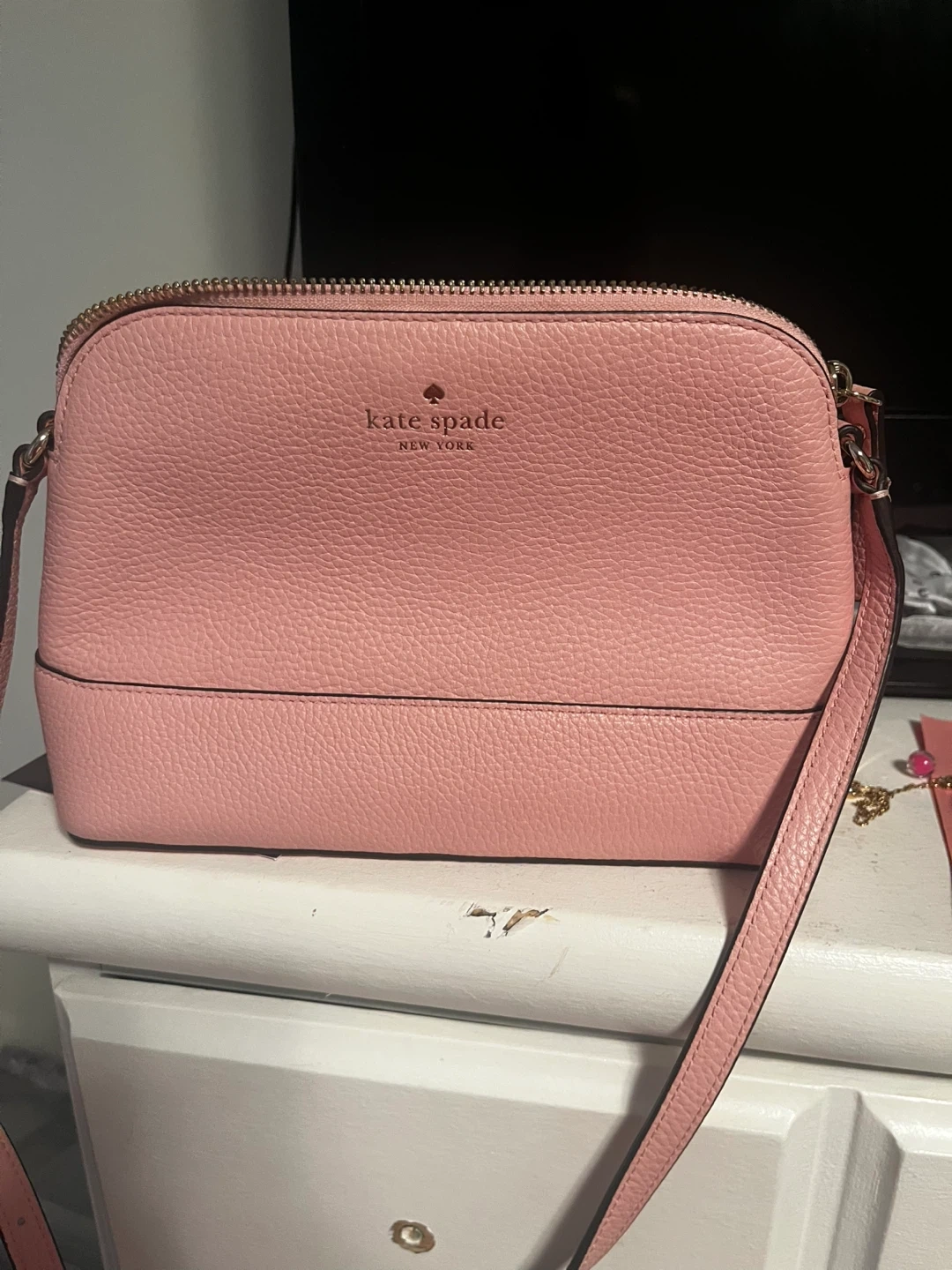 This is a cute Kate Spade crossbody bag in a lovely shade of pink! It's made of leather and is in great condition. Perfect for adding a pop of colour to any outfit!