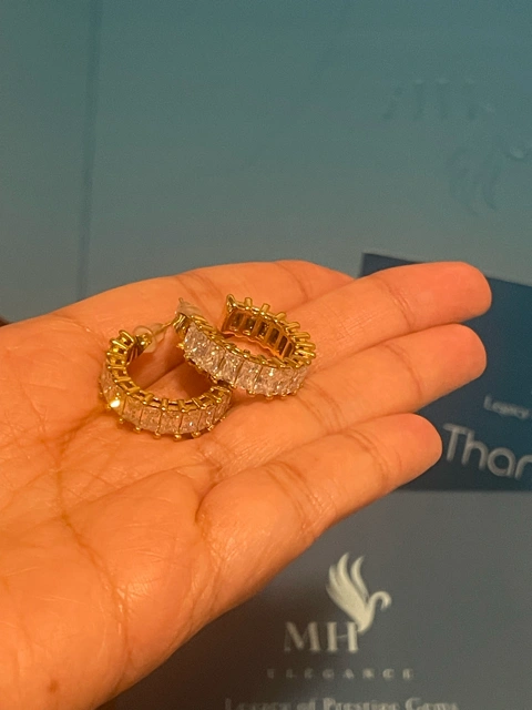 The prism crown hoops offer a perfect blend of modern elegance and timeless sophistication. made with 14K gold finished design and sparkling zircon stones, these earrings are ideal for elevating any look. Featuring a unique prism crown shape, they add a touch of luxury to both casual and formal outfits. Lightweight, durable, and hypoallergenic, these hoops are designed for everyday comfort and long-lasting wear.