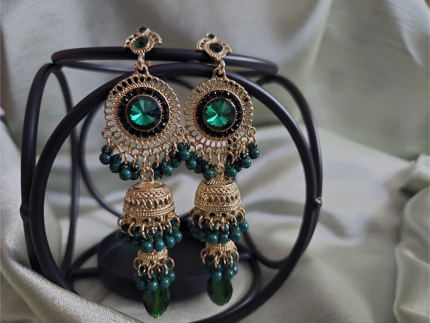 65When tradition meets luxury and elegance — they appear… Earrings that combine the magic of golden shine, the sparkle of stones, and the delicacy of beads. The deep green color adds confidence, brightness, and makes your look truly unforgettable. A perfect accent for any style — from everyday outfits to evening looks. 💚 Add a touch of elegance to your day ✨