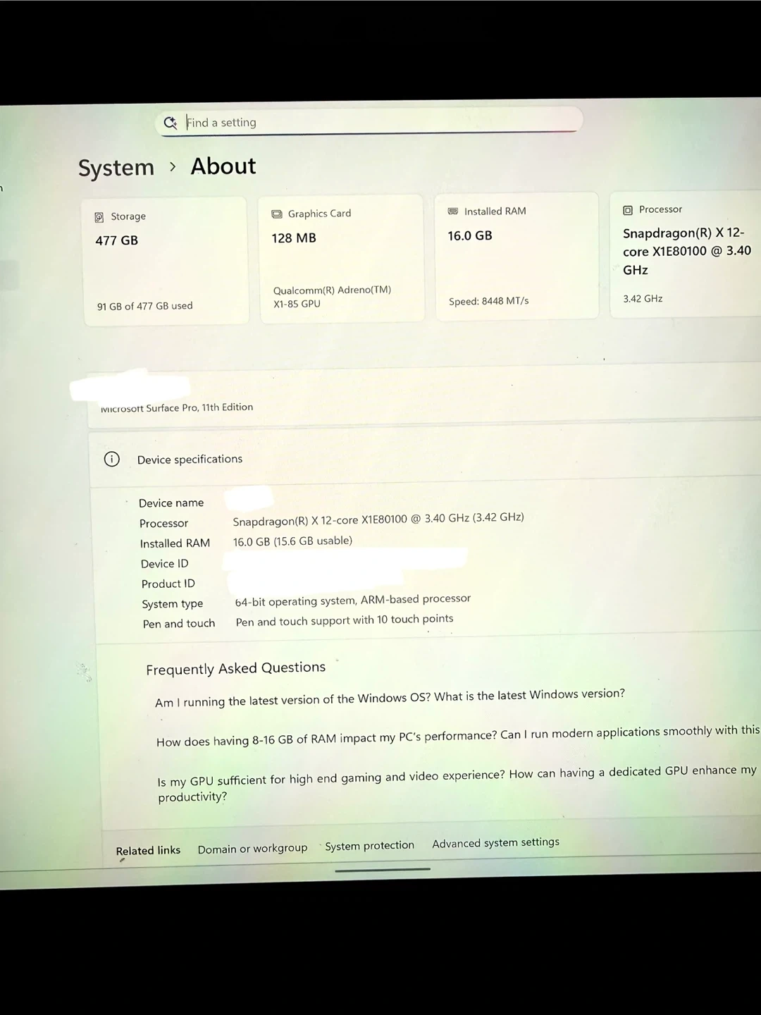 • Processor: Snapdragon X 12-core X1E80100 @ 3.40 GHz