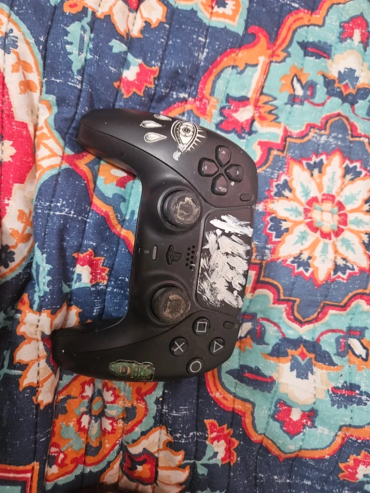 Selling a PlayStation 5 DualSense Wireless Controller. It's in used condition, showing some signs of wear. Perfect for gaming