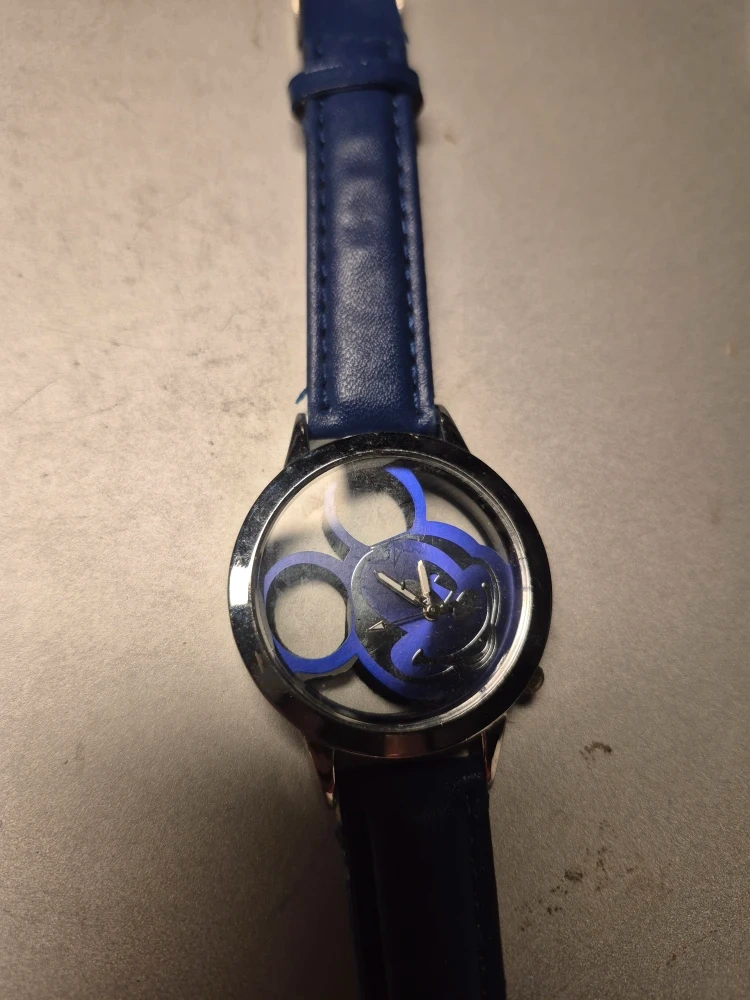 Selling a Disney Mickey Mouse watch with a blue strap and Mickey Mouse design inside the watch face! The watch is in good condition and has a unique look.