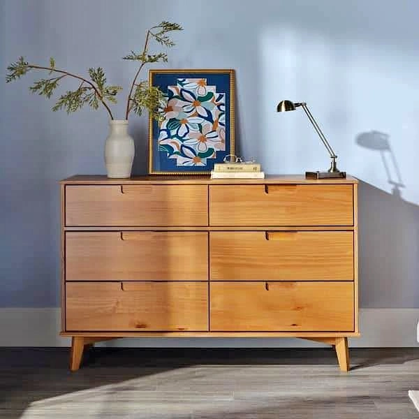 Sloane Mid-Century Modern Caramel 6-Drawer 52 in. Solid Wood Dre