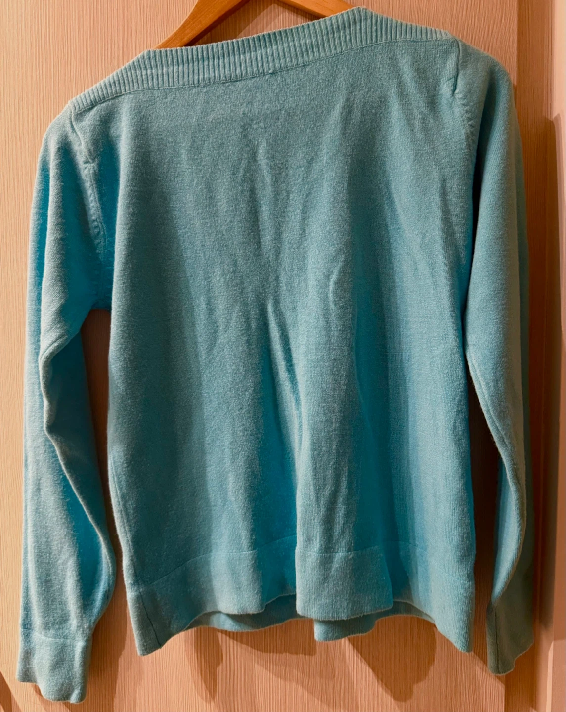 Selling a cute aqua blue sweater with button details! It's in great condition and would be a lovely addition to your wardrobe! It’s good for an event / fancier than usual gathering!