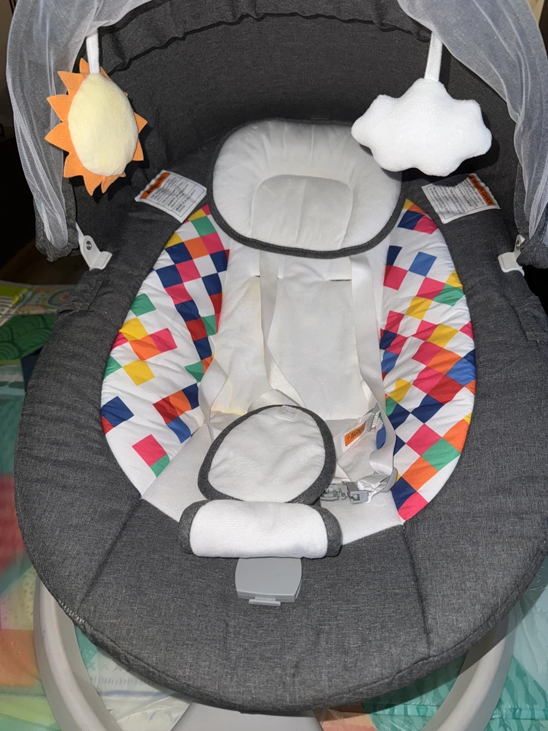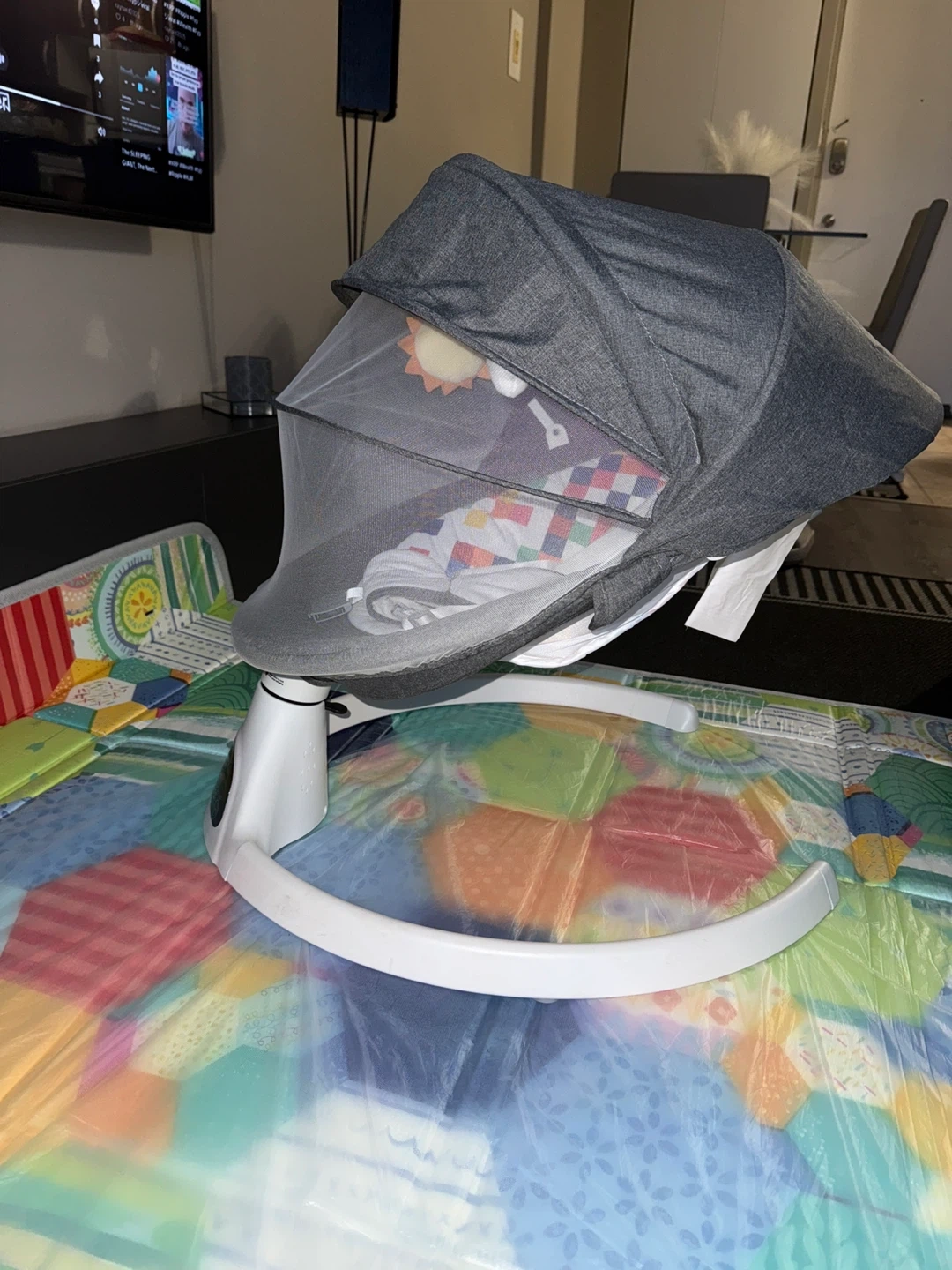 Baby swing in almost new condition. My baby used it only a few times. Very clean and fully working. Music, movement, and vibration all work. Comes with canopy and hanging toys. Smoke-free, pet-free home. Pickup in Edmonton.
