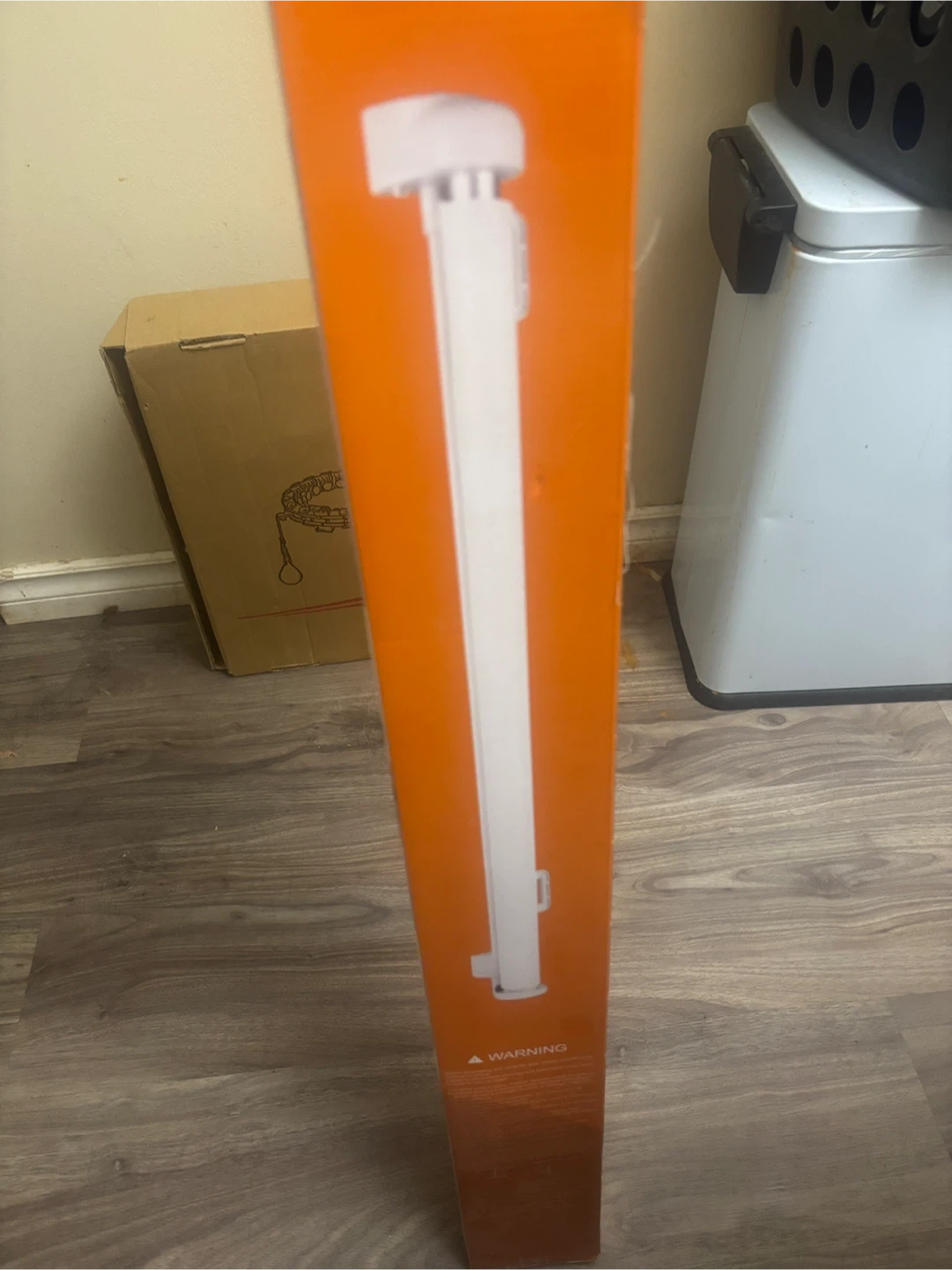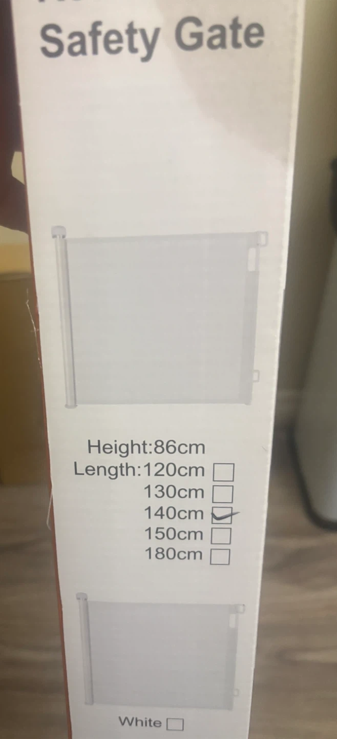 It's suitable for interior doors and stairs, and is designed to be space efficient. The gate is 86cm (33 inches) in height and 140cm(55 inches) in length.