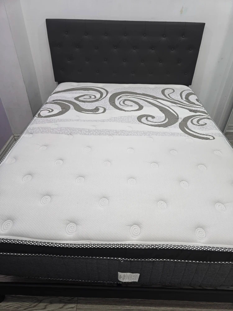 Selling a queen size mattress in great condition! It features a stylish design on the top and a sturdy construction. Perfect for a comfortable night's sleep just bought 45 days before both bed and head board selling both in that price