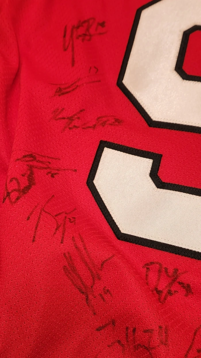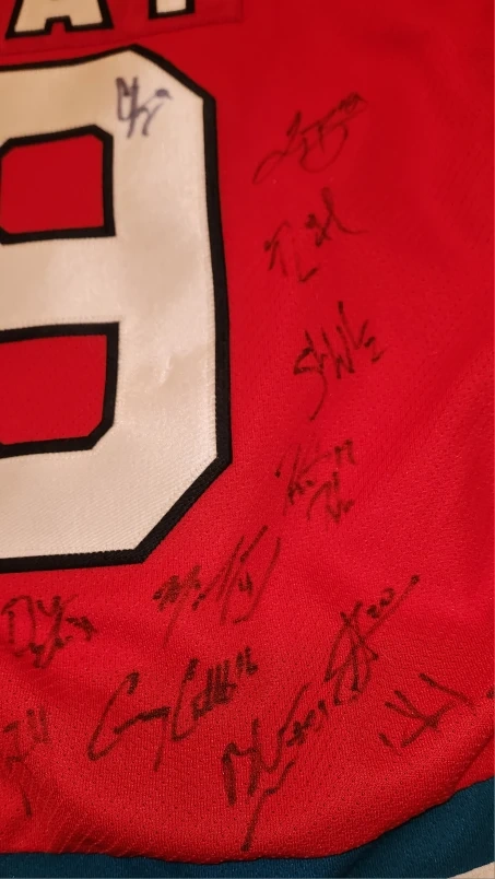 Selling a CCM Kelowna Rockets hockey jersey in adult size large! It's red with the Rockets logo on the front and the number 9 on the sleeves and back. The jersey also has signatures on the back. Signed by the whole team. Authentic signatures . 2005-2006 season.