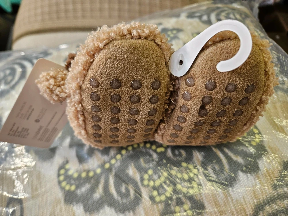 Keep your little one cozy with these adorable reindeer slipper socks from Joe Fresh! These are sized for 0-12 months and feature a cute reindeer design with a red nose and little antlers. They also have grips on the bottom to help prevent slips and falls