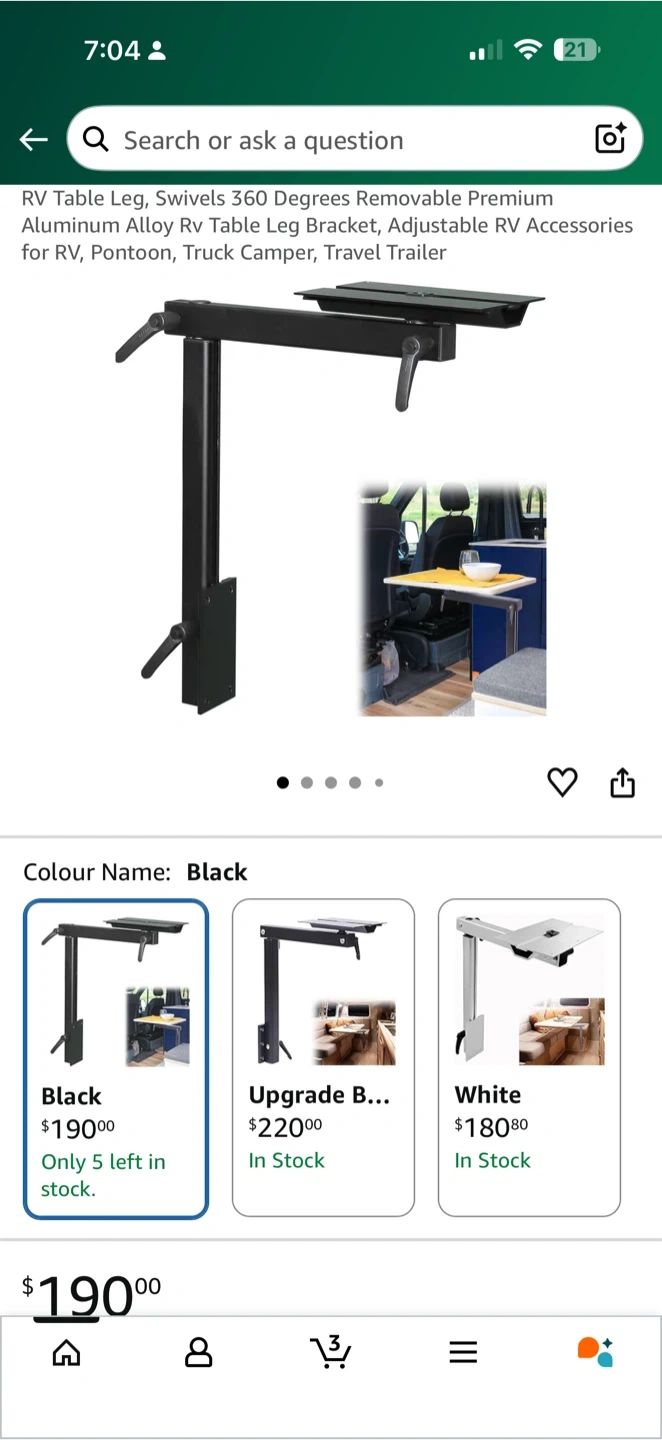 Selling a black RV table leg that swivels 360 degrees! It's a removable premium aluminum alloy RV table leg bracket, adjustable for RV, pontoon, truck camper, and travel trailer.