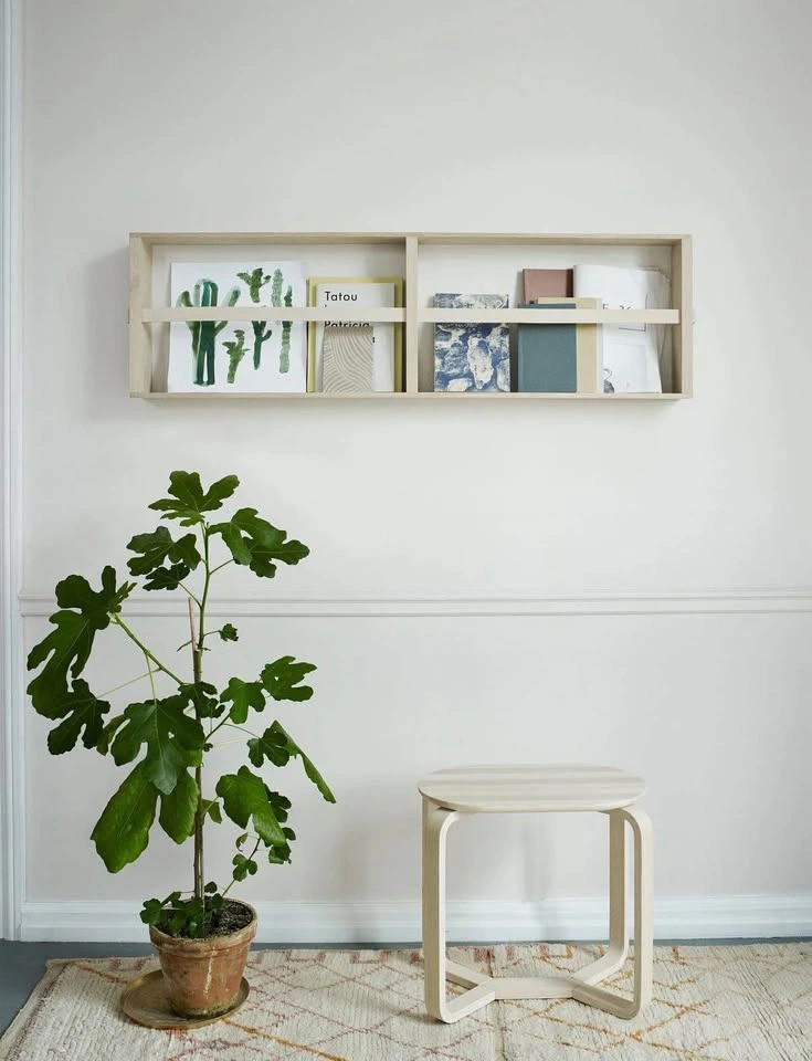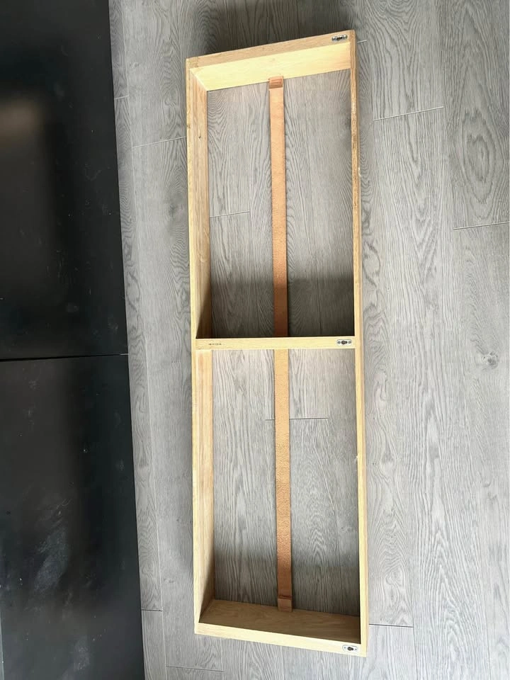 Norr Oak magazine rack by Skagerak. It has some small stains, and the leather has a bit of patina as well, but it's still a beautiful piece. Originally $600+.