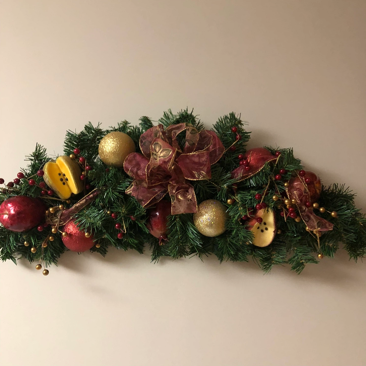 1000+Selling a festive swag, perfect for adding a touch of holiday cheer to your home! It features a mix of green foliage, decorative ornaments, and a beautiful bow