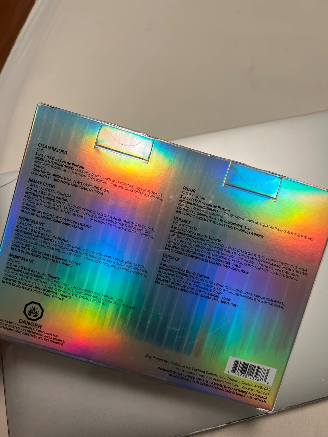 Contains: Versace, clean, phlur, Mont Blanc, jimmy choo