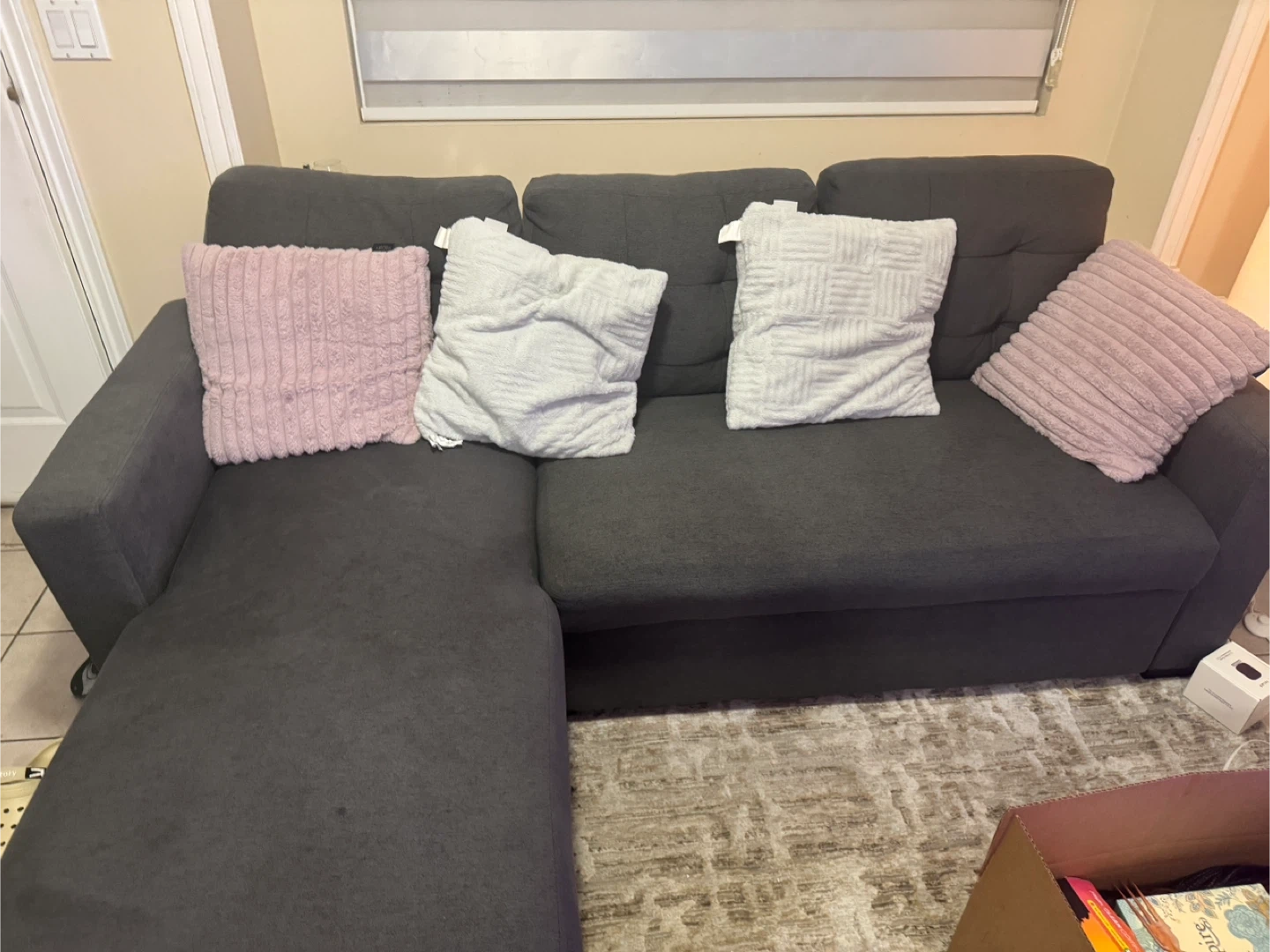 Selling a grey sectional sofa that's in great condition! It comes with built-in storage, perfect for blankets or extra pillows. A comfortable and stylish addition to any living space!