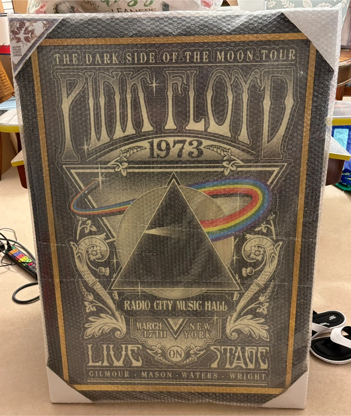 Selling a framed print of Pink Floyd's "The Dark Side of the Moon Tour" at Radio City Music Hall in New York, March 17th, 1973. It's still in its original packaging! 😊 28”X 39”