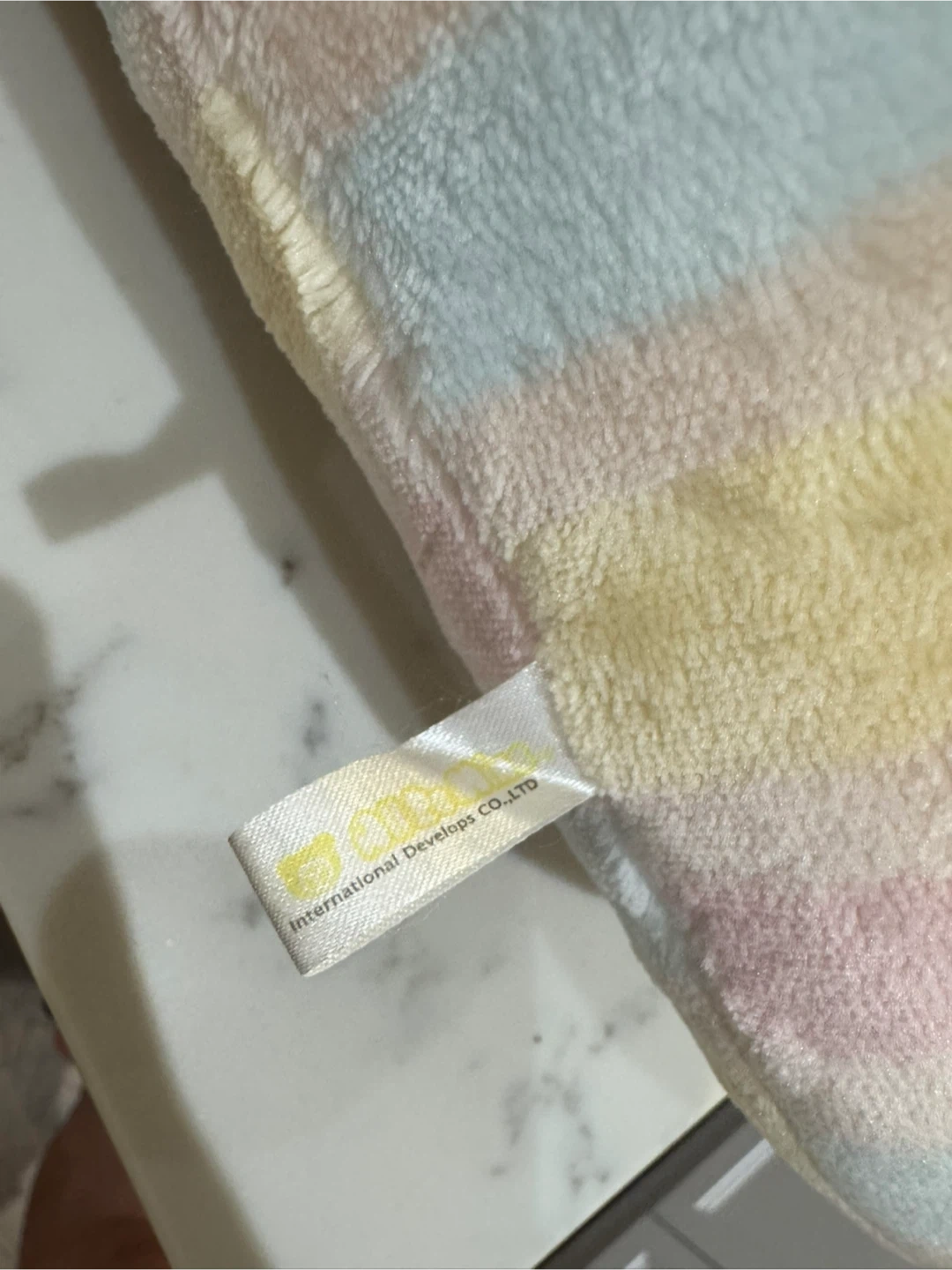 This super soft pastel striped plush bunny is looking for a new home! It's in great condition and measures approximately 29 x15 inches. Perfect for a child's room or anyone who loves cute and cuddly toys