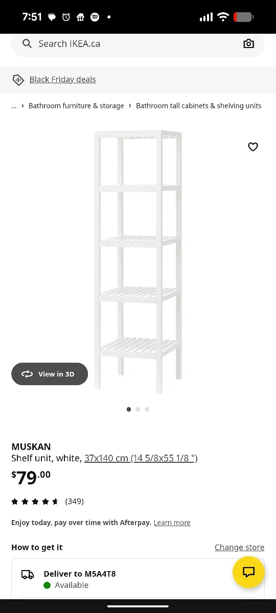 Selling a white IKEA MUSKAN shelf unit in great condition! It's perfect for adding some extra storage to your bathroom or any other room in your home. The dimensions are 37x140 cm (14 5/8x55 1/8 "). Originally bought for $79