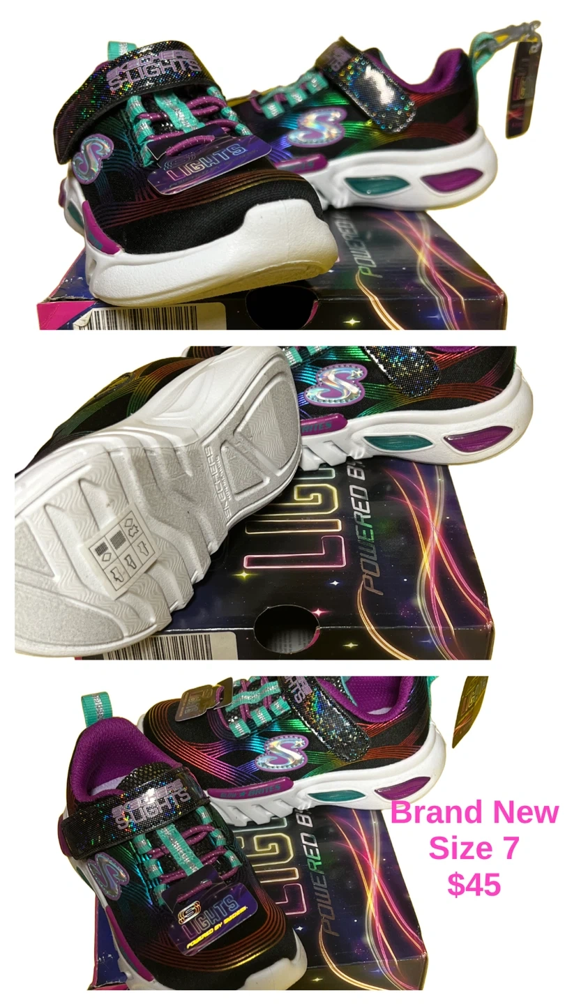 These Skechers Lights toddler shoes are brand new and ready for a new home! They're a size 7 and come with the original box. The lights are powered and working