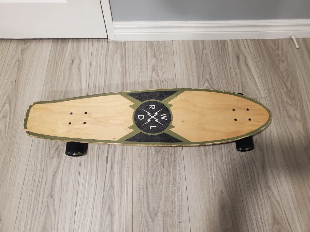 10Selling a used RWLD skateboard. It has small wear, but it's still in good condition for cruising around town. The board has a unique design and sturdy construction.