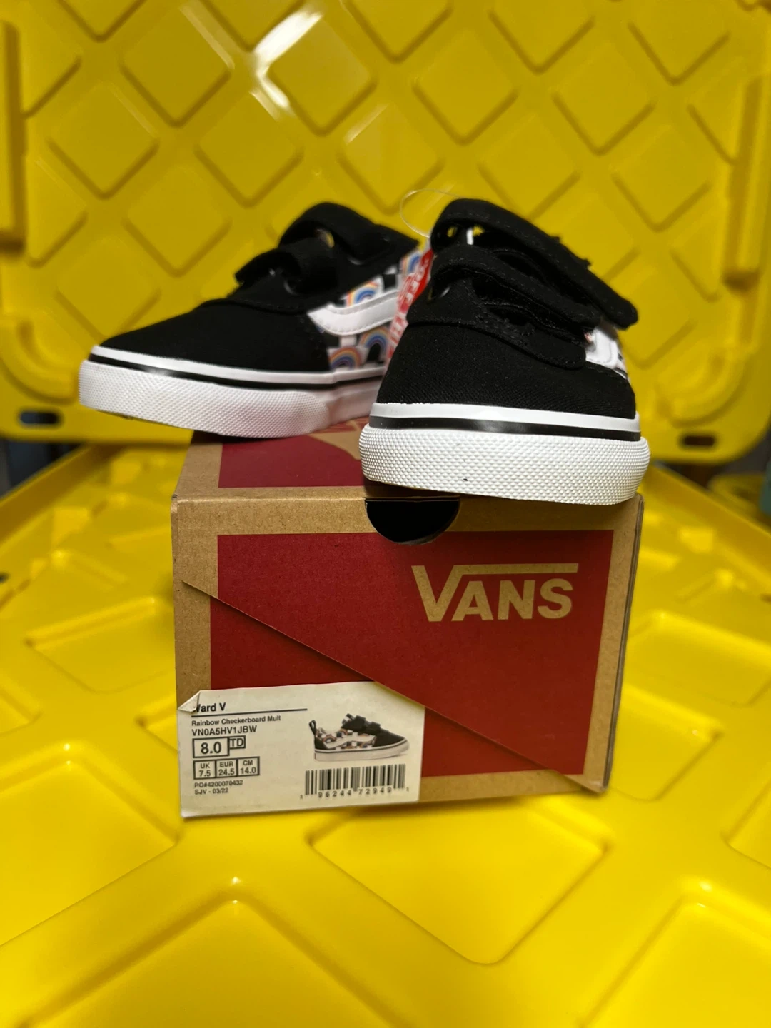 Buy & SellBrand New Vans Ward V Rainbow Shoes - Size 8Brand New Vans Ward V Rainbow Shoes - Size 8$41These are brand new Vans Ward V shoes in a size 8! They feature a fun rainbow design.ConditionNewSizeToddler 8BrandVansWHERE TO MEETFarm BoyView MapSELLERverifiedJennAlderwood600 reviews0 chats·1 favorites·10 views
