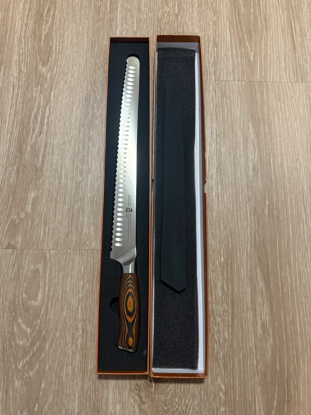 Selling a TUO Cutlery Fiery Phoenix Serrated Slicing & Carving Knife.