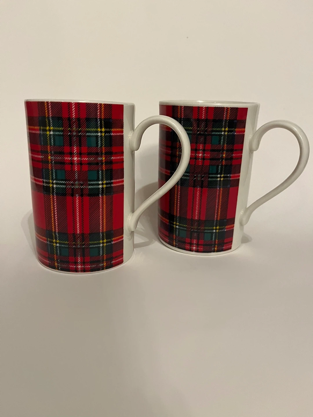 Selling a pair of mugs featuring a classic tartan pattern! These mugs are in great condition and would be perfect for enjoying your favourite hot beverage on a chilly day