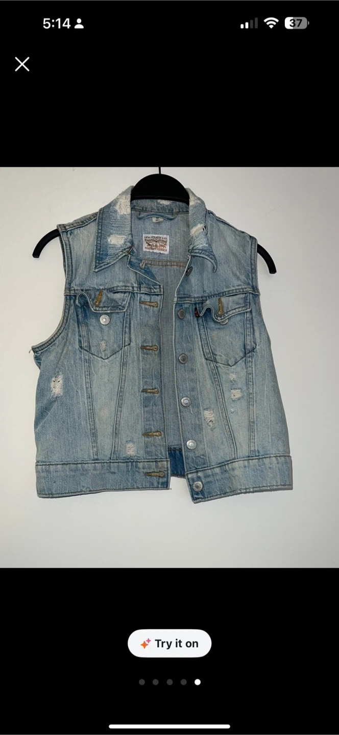 Levi's denim vest for women, size small. This vest has a light wash and a classic design. Perfect for layering or adding a bit of edge to any outfit!