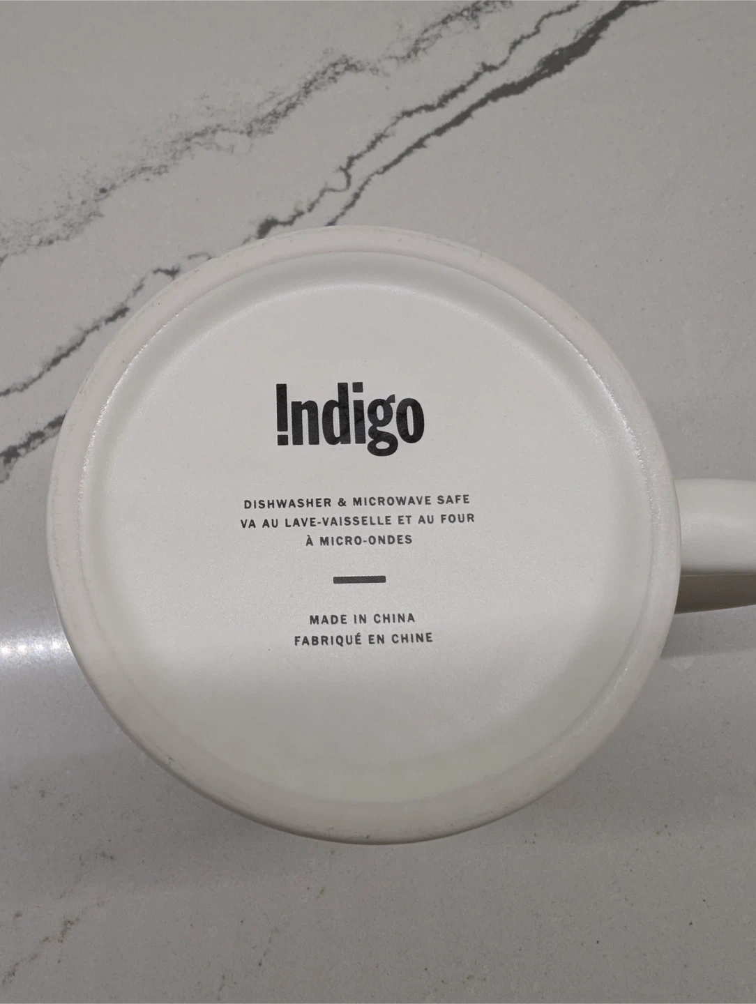 Selling an Indigo mug with the letter 'D' on it! It's white on the outside with a lovely blue interior. This mug is both dishwasher and microwave safe, making it super convenient for everyday use