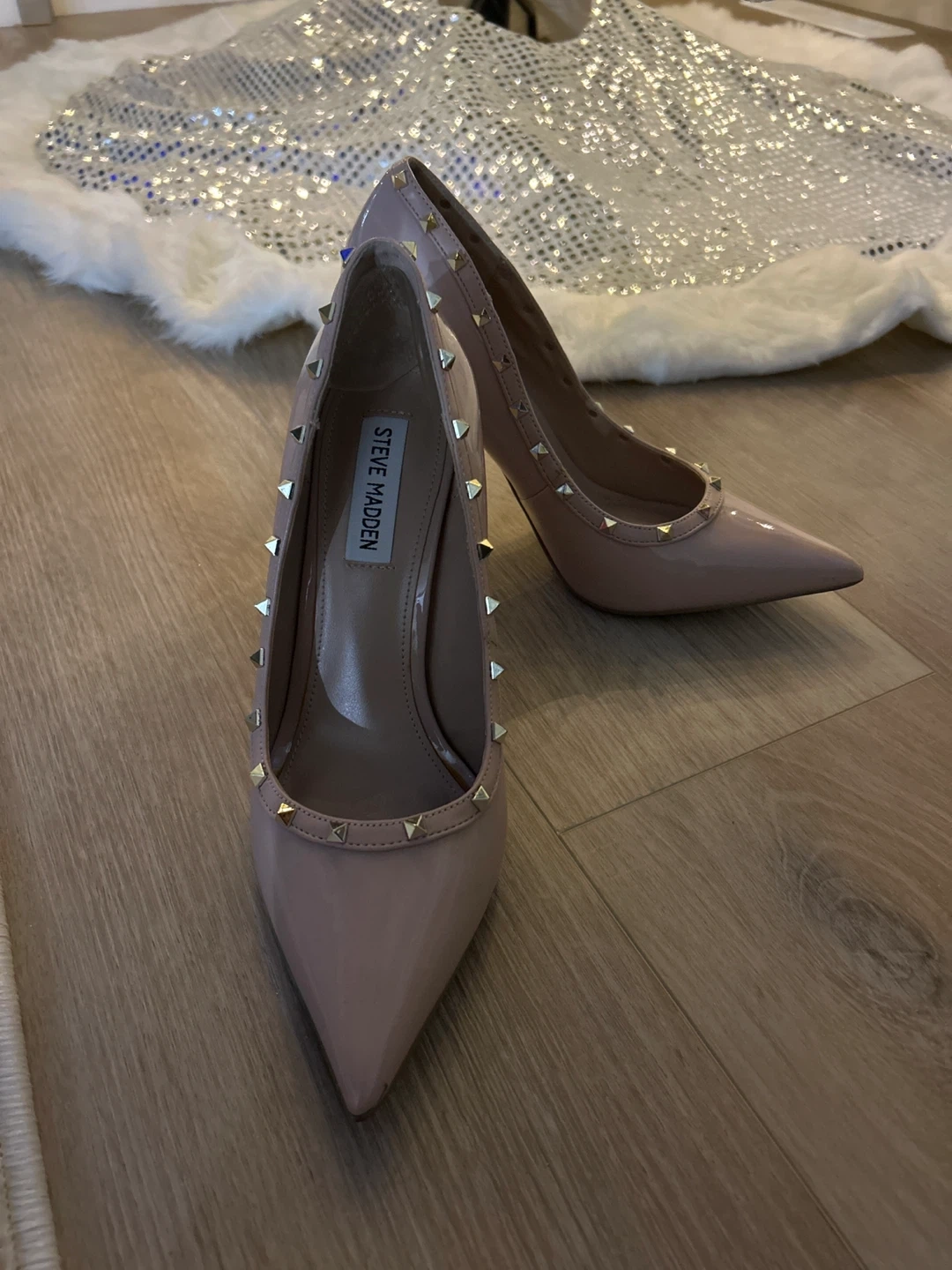 Selling a pair of Steve Madden women's heels in a nude colour. They are a size 7.5. They show some signs of wear on the soles, but are in otherwise good condition! Used a couple of times. I guess I thought I could walk in 👠but failed. Paid $150