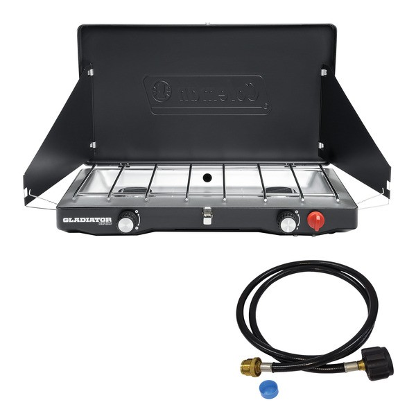 Coleman Classic Propane Stove, 2-Burner Camping Stove (20,000 BTUs) + Coleman 5-Ft. High-Pressure Propane Hose and Adaptor