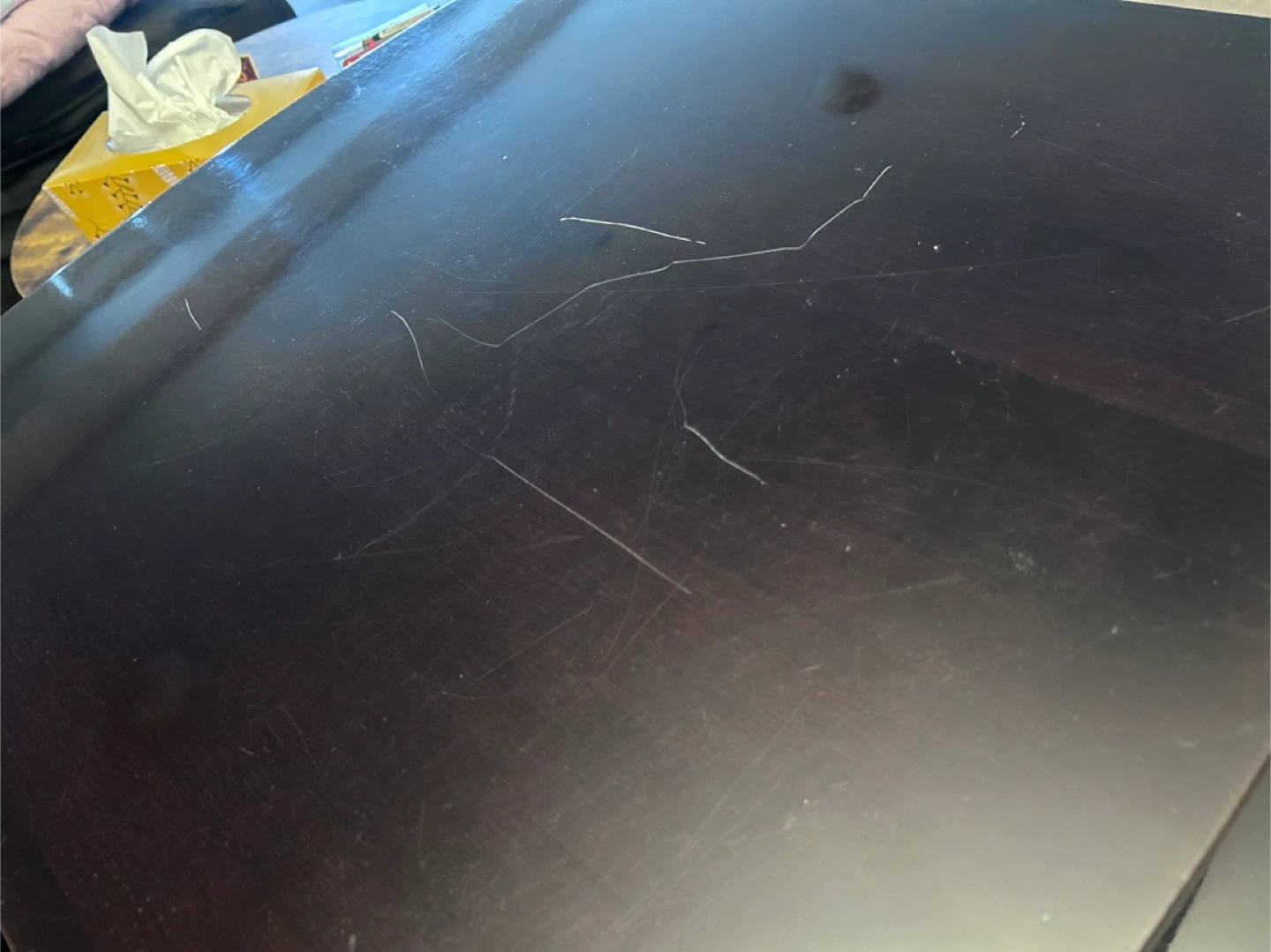 Selling a set of coffee and end tables. They are black with marble detailing on the coffee table. There are some scratches on the surfaces, as shown in the photos, but otherwise they are in good condition. Perfect for a living room or den!