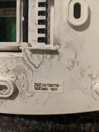 Worked when it was taken off the wall. Stay in control of your home's temperature with the Honeywell T5060F7088 thermostat. This programmable thermostat features a digital touch interface for easy adjustment and scheduling. With the trusted Honeywell brand behind it, you can rely on this model for efficient and convenient heating and cooling in your home. Perfect for those looking to upgrade their current thermostat to a more advanced and user-friendly option, the Honeywell T5060F7088 is a reliable choice for any household. There is some discolouration on the back and on the back of the mount. Doesn't really affect anything that is visible or functional.