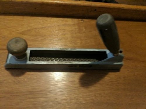 Vintage Stanley 285 rasp with adjustable wooden handles. It's a great vintage piece. The rasp blades show some wear at the front and back but still a lot of use left in this blade if you're going to use it.