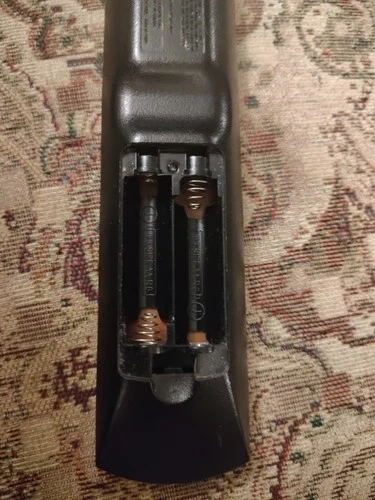 RMT-d165a remote in good condition. No visible corrosion on the battery contacts. Some minor cleaning needed. Batteries go in it fine. Untested with the proper device.