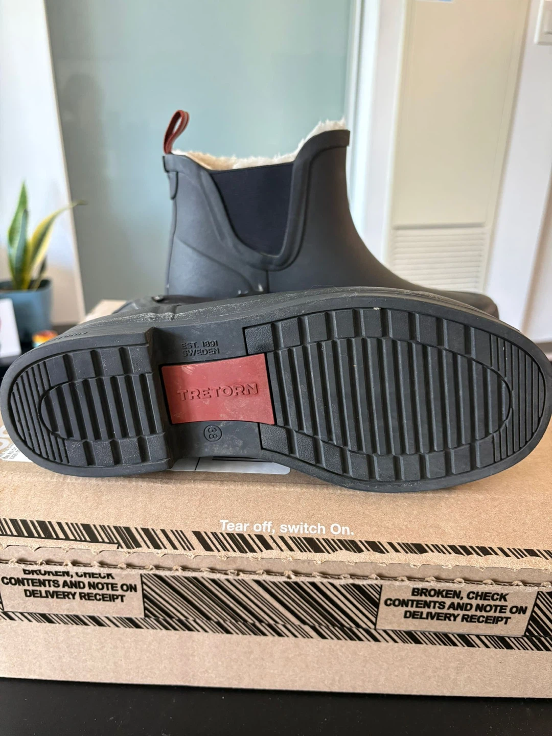 Selling my Tretorn fur-lined rain boots, size 8, in classic matte black.