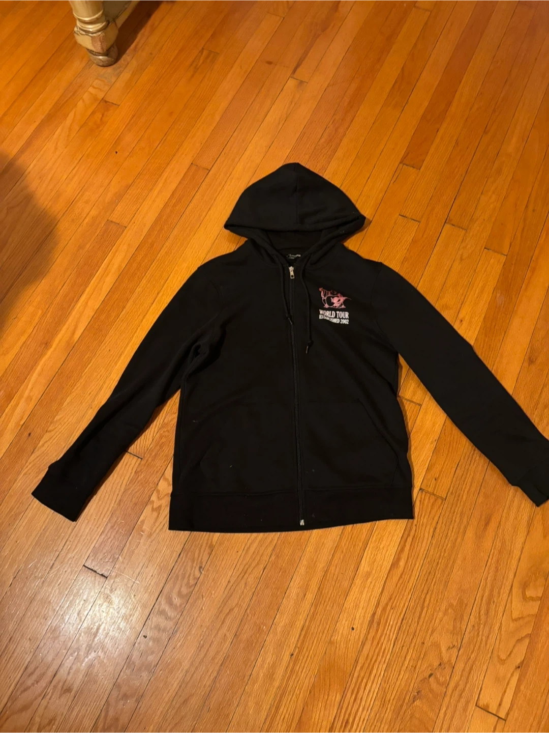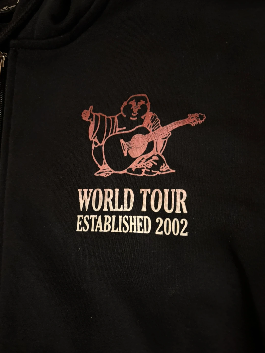 Selling a True Religion TR Gradient Zip Hoodie in black! It's a size M/M and features the World Tour Established 2002 design on the back. Great for casual wear! Any offers are welcomed, but the limit price is 60$