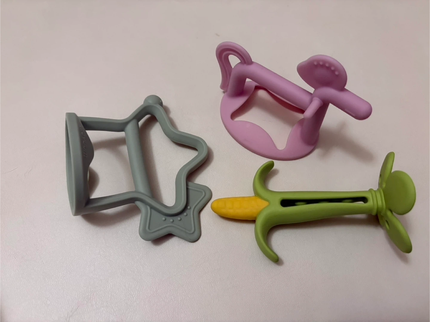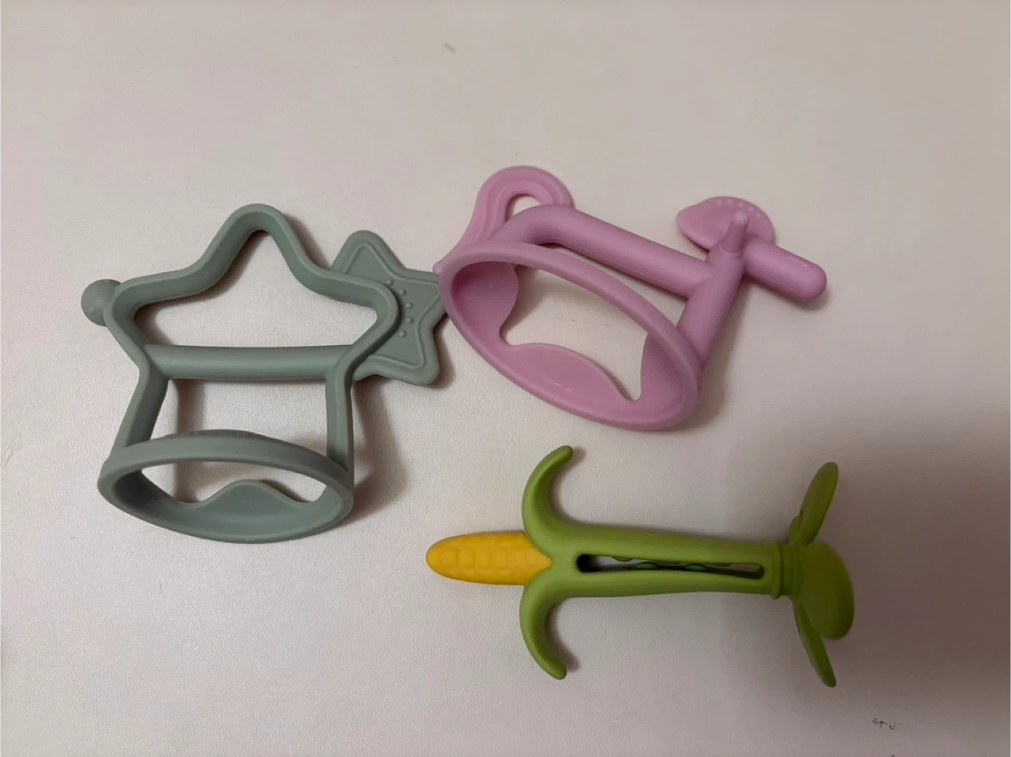 Selling a set of baby food teethers in fun shapes like a star, banana, and what looks like a little person! These are great for introducing new foods to your little one while soothing their gums. They're in excellent condition and ready for a new home.