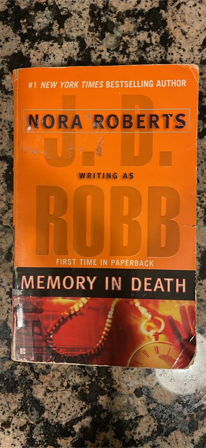 Selling a paperback copy of "Memory in Death" by J.D. Robb, who also writes as Nora Roberts. It is a #1 New York Times Bestselling Author book. It's a first time in paperback edition