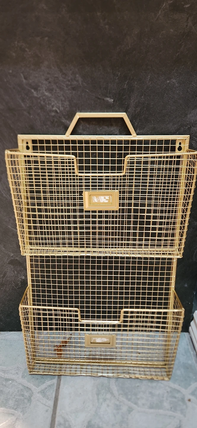 gold metal mesh hanging document folder filing wall