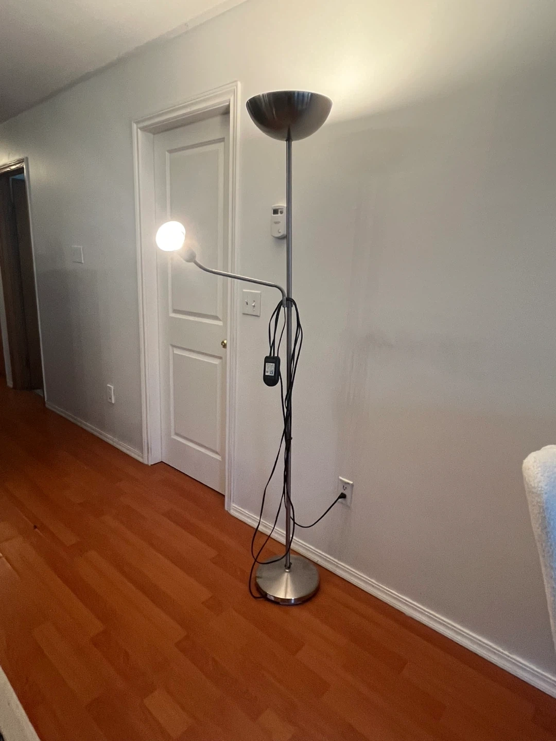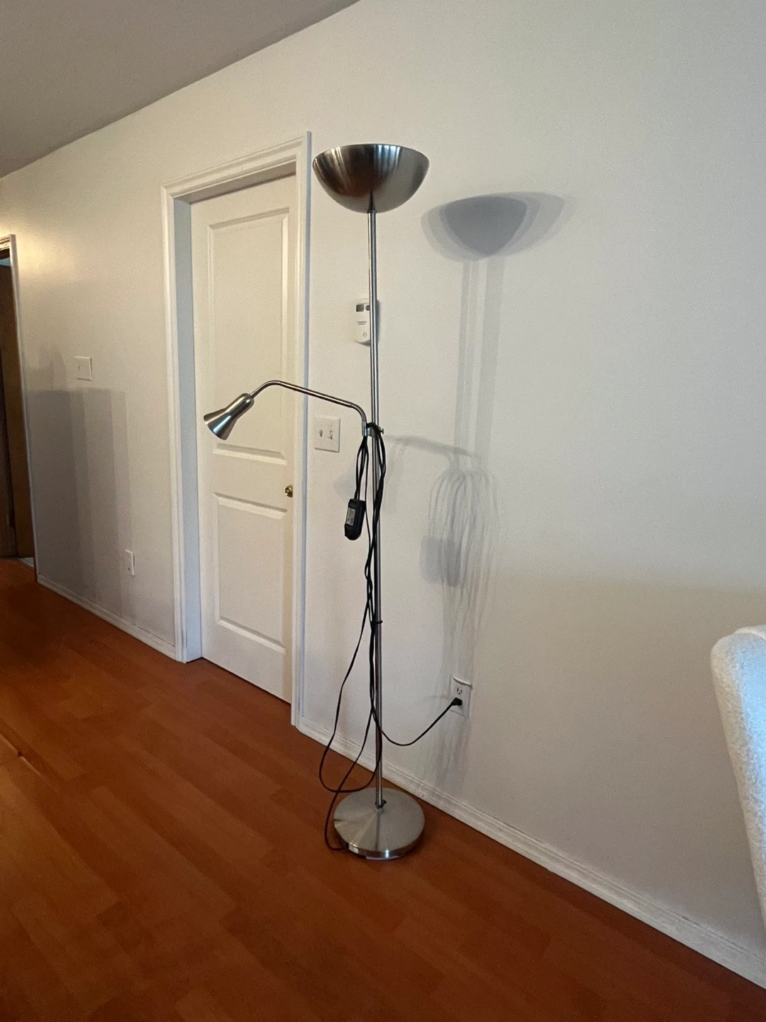 Selling an IKEA TAGGEN floor lamp with a reading light. It has a sleek, modern design and provides both ambient and focused lighting. Perfect for any living room or bedroom!