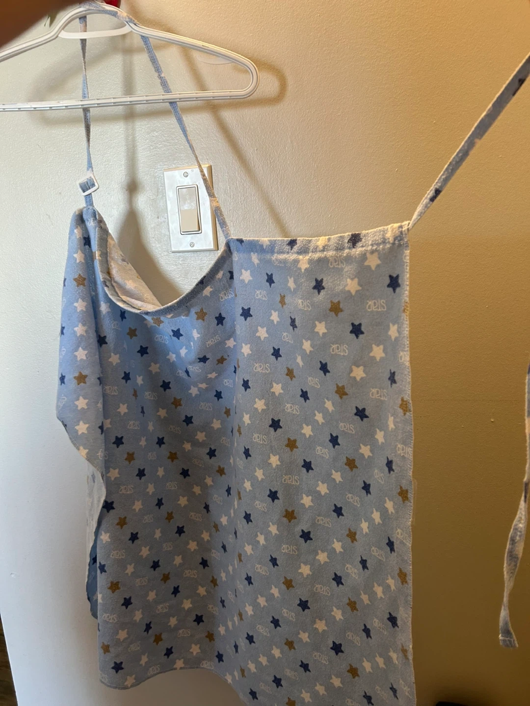 This nursing cover features a cute star pattern in shades of blue and gold. It's in great condition and perfect for discreetly nursing your little one while you're out and about. Lightweight and easy to carry, it provides full coverage and privacy.
