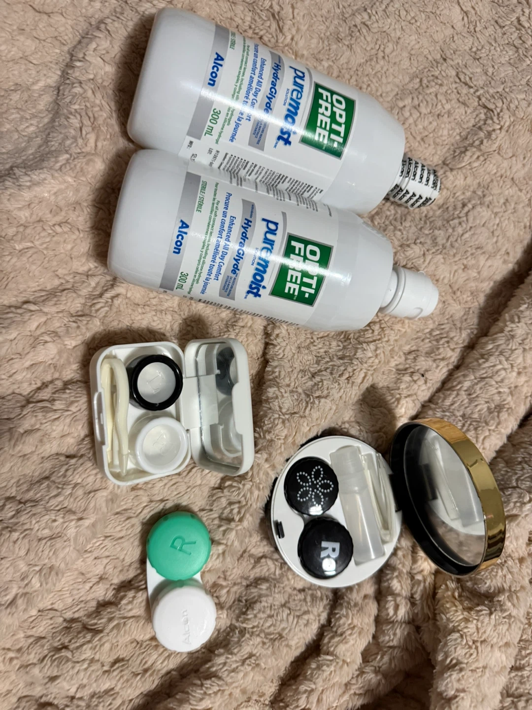 Selling two bottles of Opti-Free Puremoist contact lens solution. Each bottle contains 300mL of solution. Great for all soft contact lenses, including silicone hydrogel