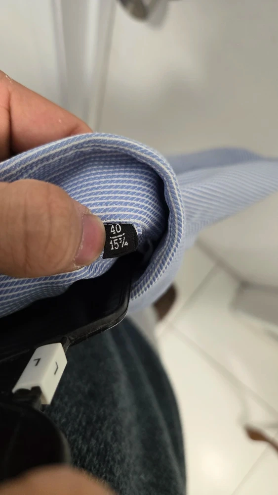 Selling a Giorgio Armani dress shirt in size 15 3/4. It's a light blue colour with a subtle striped pattern. Made in Italy!