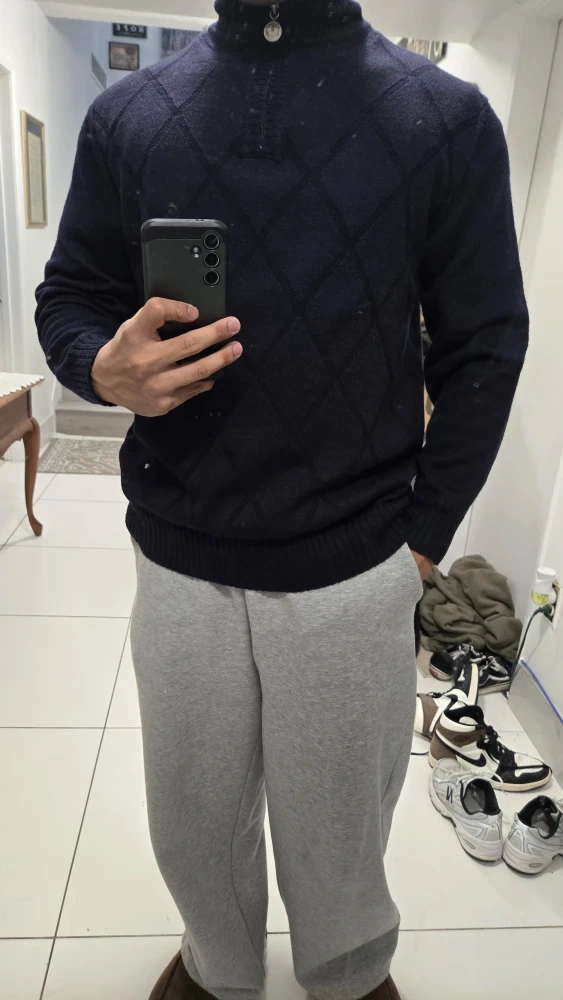 Cozy Versace Jeans Couture sweater with a quarter-zip and a stylish diamond pattern! It's a great addition to any wardrobe for a touch of luxury and warmth.