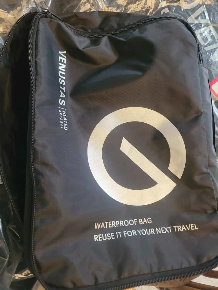 The vest features carbon fiber heating elements, typically across the collar, back, shoulders, and chests. There are multiple adjustable heat settings (low, medium, high) controlled by a button on the chest. It uses a rechargeable battery pack (often 7.4V) which can also be used to charge other devices via a USB port.