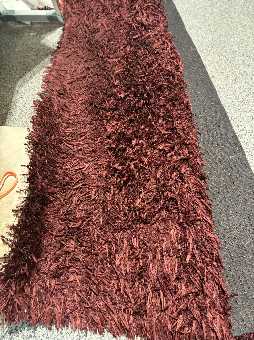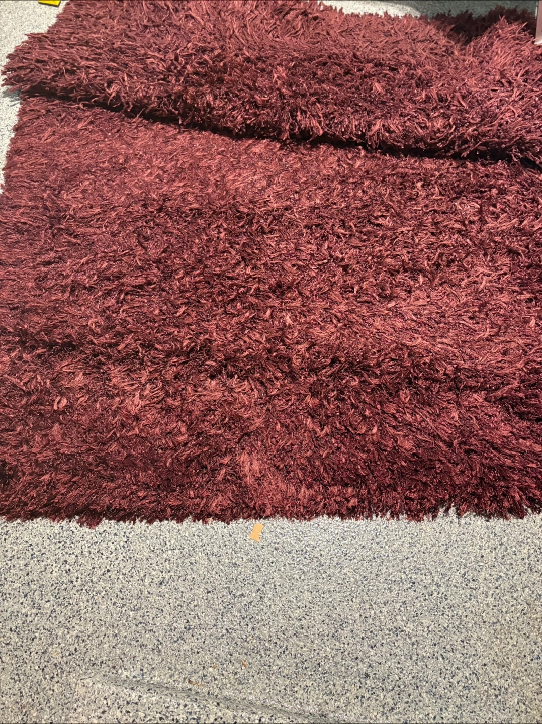 Very heavy pure wool deep rich burgundy shag style area rug. Well maintained and professionally cleaned. Perfect for a family room, or any space you want to add some warmth and maybe an accent colour.
