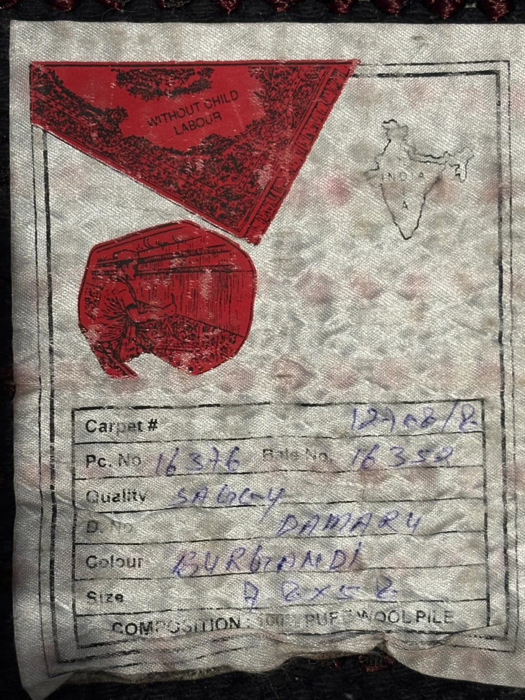Deep Burgundy Pure Wool Shag Style Area Rug