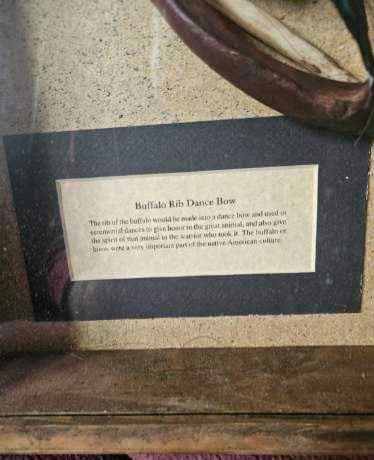 Indigenous ceremonial dance bow made from Buffalo rib. This item is to honour the great animal and give the spirit of that animal to the warrior who took it.